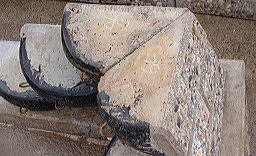 廃タイヤを利用したリサイクルブロック『タイヤップ』をTBー工法で積み上げ前後の型枠として、できた空間にコンクリートを打設して、所定の構造物を構築する事が出来ます。 |
