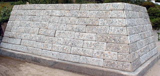 リサイクルブロック『タイヤップ』の表面に、自然石(小砂利模様)で仕上げたブロックを積み上げて、土留め宅地造成等に利用出来ます。 |